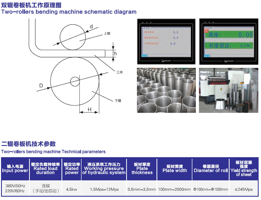 • 滿足0.3mm-5mm最大幅度2000mm,各種金屬板材一次卷圓成型